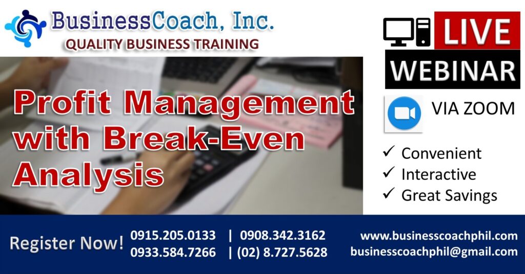 Start-up Entrepreneurs, Business owners and SMEs need to determine their break-even point. This will help them in projecting their target income as well as the required number of units to be sold to allow them to materialize their target revenue and profit.
